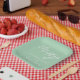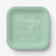 Este plato de papel de boda verde suave a la menta presenta una tipografía blanca de moda para una ceremonia al aire libre de primavera dulce. Sencillo y elegante guión en una tranquila y sólida decoración verde pastel para una recepción con jardín.