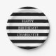 Plato De Papel Moda rayas blancas y negras nombre de cumpleaños p