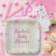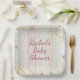 Gracias Tropical Beach Seashell Baby Shower Boho Moda Modern Fiesta Plates presenta un diseño de bonito con temática playa en colores pastel con conchas y su texto personalizado en el centro en elegante tipografía de escritura caligrafía rosa. Suministros de fiesta para bebés. Diseñado por Evco Studio www.zazzle.com/store/evcostudio