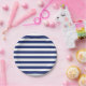 Plato De Papel Modelo de la raya de los azules marinos y del