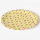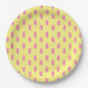 Esta placa del fiesta ofrece un modelo de repetición de popsicles rosados sobre un fondo amarillo.