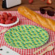 Plato De Papel Modelo verde y amarillo de Pixelated