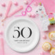 Create your own personalized name 50th birthday party paper plates featuring modern minimalist typography in black and white color