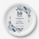 Plato De Papel Modern Blue 50 Aniversario Boda de la vegetación