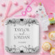 The centerpiece of the plate features the names of the couple in a sophisticated mix of classic serif and flowing handwritten script. Below the names, your wedding date is presented in a clean, professional font. The timeless black and white monochrome palette ensures these plates will complement any wedding theme, from a chic urban loft to a classic outdoor ceremony. These high-quality plates offer a practical yet beautiful way to maintain a cohesive design across your entire reception.