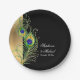 Plato De Papel Modern Peacock Feathers Faux Jewel Scroll Bodas