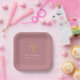 Plato De Papel Modern Pink Religious Cross Girl Confirmation