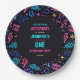 Modern retro neon 80s 1st birthday party paper plates with bright colorful design. Perfect tableware for a fun neon themed first birthday celebration. 🎉