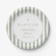 Modern Sage Green Religious Cross Baptism Paper Plates.