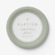 Plato De Papel Modern Sage Green Religious Cross Baptism