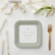 Modern Sage Green Religious Cross Boy Baptism Square Paper Plates.