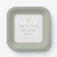 Plato De Papel Modern Sage Green Religious Cross Boy Baptism