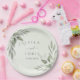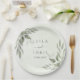 The design showcases a clean, minimalist layout with a romantic fine-line script for your names or wedding date, perfectly balanced against the organic greenery. Ideal for garden brunch weddings, outdoor engagement parties, or a chic cake-cutting ceremony, these plates provide a high-end alternative to standard party supplies. Durable, elegant, and nature-inspired, they ensure that every detail of your tablescape—down to the very last bite—is perfectly coordinated and sophisticated.