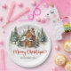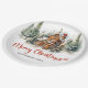 Clásicos platos de Navidad con ilustracion de acuarela eterno en la casa de pan de jengibre en el pinar de invierno con bayas rojas y árbol de Navidad. Personalice fácilmente el texto o déjelo en blanco. Impresiones violentas ©