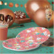 Los modernos platos de papel con motivos florales le encantarán a sus huéspedes, aptos para cualquier ocasión, como almuerzos, picnics y barbacoas. té de la tarde y reuniones familiares. Los elementos coincidentes disponibles incluyen servilletas de papel. © Julie McIver.