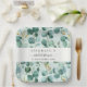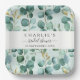 Eleva el ambiente de la mesa de la ducha de novia con este elegante plato de papel de eucalipto de color agua. Con una delicada corona de hojas de eucaliptos verde suave entrelazada con ramas acentuadas en oro, este diseño exuda belleza natural y sofisticación refinada. La caligrafía moderna y la tipografía serif clásica aportan un toque elegante, lo que la convierte en un lugar ideal para celebrar celebraciones rústicas, boho o de temática minimalista. Diseñado tanto para la funcionalidad como para el atractivo estético, este plato personalizado mejora la decoración de eventos y, al mismo tiempo, hace que la limpieza sea sencilla. Ideal para bodas, duchas de novias y reuniones especiales.