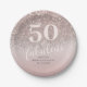 Plato De Papel Moderno 50 y fabuloso Purpurina rosado Cumpleaños
