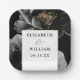 Estos elegantes platos de papel boda floral en blanco y negro se pueden personalizar con su información en tipografía moderna. Diseñado por Thisisnotme©