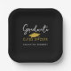 Plato De Papel Moderno Clase Negra y Oro de 2025 Graduación Cap