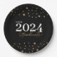 Plato De Papel Moderno Confetti Black Gold Class de 2024 Graduado