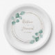 Plato De Papel Moderno Eucalyptus Watercolor Café Script Boda