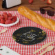 Un plato de papel de cumpleaños moderno, elegante y glamuroso. Este diseño presenta una tipografía vibrante "Cumpleaños feliz" con un bokeh de gradiente dorado sobre un fondo negro. Personalice y agregue los detalles de su fiesta. ¡Haz de tu cumpleaños un evento extraordinario!