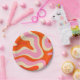 Plato De Papel Moderno Retro Láquido Swirl Abstracto Patrón Rosa