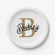 Plato De Papel Moderno y elegante nombre de monograma Black Gold