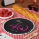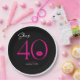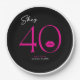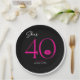 Moderna y moda, este diseño de placas de papel de cumpleaños declara, "ella tiene 40 años" y combina el clásico blanco y negro con acentos de rosa caliente brillante, con un lúgubre par de labios. Su diseño mínimo es un diseño simple y divertido para celebrar el cumpleaños del hito. Creado por Simply Farmhouse Press.