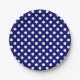 Plato De Papel Modernos puntos modernos de polka blanca en azul m
