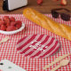 Plato De Papel Mon Cherie Let's Fiesta Cherry Red Bold Stripe
