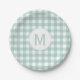 Plato De Papel Monograma básico simple de Sage Green Gingham
