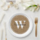 Plato De Papel Monograma blanco de burlap rústico moderno