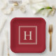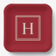 Plato De Papel Monograma Clásico Elegante en Rojo Arándano