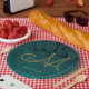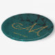 Plato De Papel Monograma de Boda de Oro Verde azulado Oscuro Flor