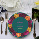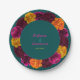 Plato De Papel Monograma de boda floral verde rosa amarillo moder