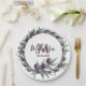 Plato De Papel Monograma de campo de ramas de oliva púrpura