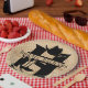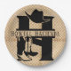 Letra fraccionada monograma "H" con botas de vaquero y gorra en un fondo rústico de tablero de ajedrez. Personalización con nombre de familia o de empresa