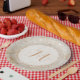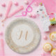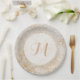 Plato De Papel Monograma de espuma blanca y dorada