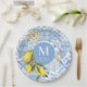 Plato De Papel Monograma de fruta de limón, azulejo azul