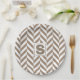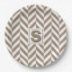 Plato De Papel Monograma de Herringbone Blanco Tan