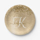 Personaliza fácilmente este diseño de placas de papel de moda a la moda con purpurina brillante de oro en bonito sobre fondo metálico cepillado de oro.