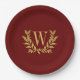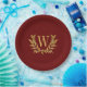 Plato De Papel Monograma de la hoja dorada roja Boda de Moda eleg