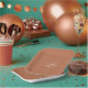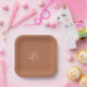 Moda y minimalista. Estas preciosas placas de papel boda presentan un monograma de dos colores ocres, sobre un fondo de color ocre de moda.