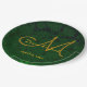 Plato De Papel Monograma de la recepción de la Boda Verde de Oro