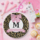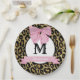 Este plato de papel audaz y elegante presenta un fondo de estampado de leopardo negro y dorado con detalles brillantes, combinado con un lazo suave rosa para un contraste glamoroso. El centro muestra un monograma completo personalizable, enmarcado por un diseño circular clásico. Una pancarta rosa pastel debajo permite la personalización con un nombre, evento o frase especial, lo que hace que esta sea la opción perfecta para fiestas de despedida de soltera, cumpleaños con tema de moda, duchas de novia o celebraciones de lujo. Ya sea que esté organizando una soirée glamorosa o un evento preppy-chic, estos platos aportan un toque feroz pero femenino a cualquier configuración de mesa.