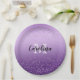 Plato De Papel Monograma de ombre púrpura de confetán plateado