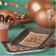 Los tonos marrones y cálidos de color marrón oscuro le dan a su fiesta un aspecto clásico con el plato cuadrado grande de estilo rústico de Wood Tone Monogram. Personaliza tu texto.