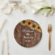 Plato De Papel Monograma del Boda del girasol de la madera y la m