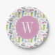 Plato De Papel Monograma del patrón de tenis rosado acuarela